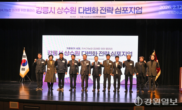 강릉시의회 상수원대책 특별위원회(위원장:김용남) 주관 '강릉시 상수원 다변화 전략 심포지엄'이 12일 강릉 단오제전수관에서 최익순 강릉시의장, 김홍규 강릉시장을 비롯한 관계자들이 참석한 가운데 열렸다. 강릉=권태명기자