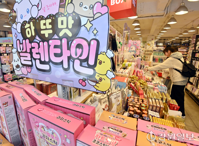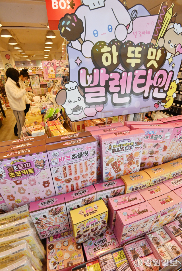 밸런타인데이를 앞둔 12일 아트박스 춘천점에서 고객들이 초콜릿과 초콜릿 DIY 키트를 살펴보고 있다. 임도혁기자
