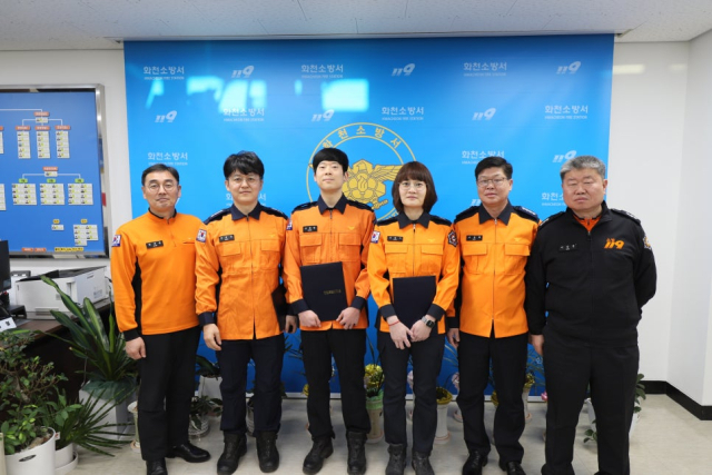 화천소방서(서장:조용철)는 12일 서장실에서 소방장 전진욱, 강중원, 소방사 전슬기 대원 등 3명에게 하트세이버 인증서를 수여했다.