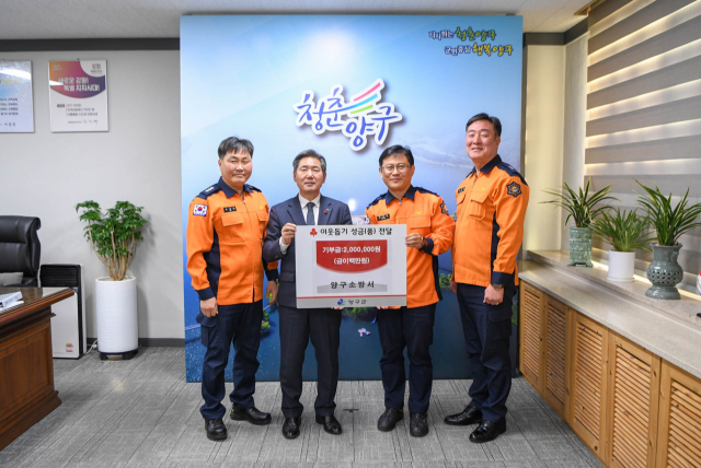양구소방서(서장:권혁범)는 12일 양구군청을 방문해 이웃돕기 성금 200만원을 서흥원 양구군수에게 전달했다.