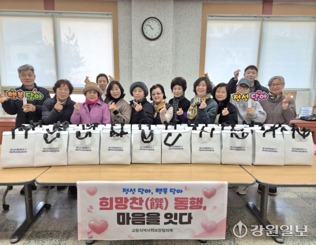 춘천 교동 지역사회보장협의체(위원장:이순자)는 12일 설 명절을 앞두고 돌봄이 필요한 이웃 30가구를 대상으로 손수 준비한 떡을 나누는 ‘복(福) 나누미 반찬나눔’ 봉사 활동을 펼쳤다.