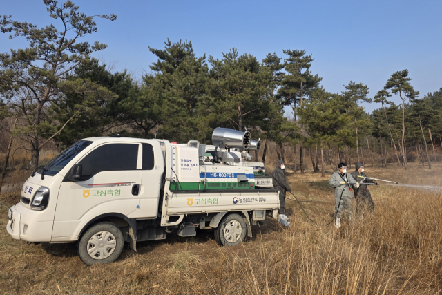 NH농협 고성군지부(지부장:채동완)와 고성축산농협(조합장:송명근)은 지난 13일 죽왕면 송지호 일원 철새도래지에서 조류인플루엔자(AI)와 아프리카돼지열병(ASF) 확산 방지를 위한 방역 활동을 실시했다.