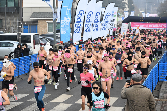 ‘2026년 평창 대관령 알몸 마라톤대회’가 제34회 대관령눈꽃축제의 일환으로 14일 눈꽃축제장 일원에서 평창군체육회(회장:지형진)와 대관령면체육회(회장:권혁규)의 주최·주관으로 열려 5㎞, 10㎞ 2개 코스에 450여명이 참가했다.