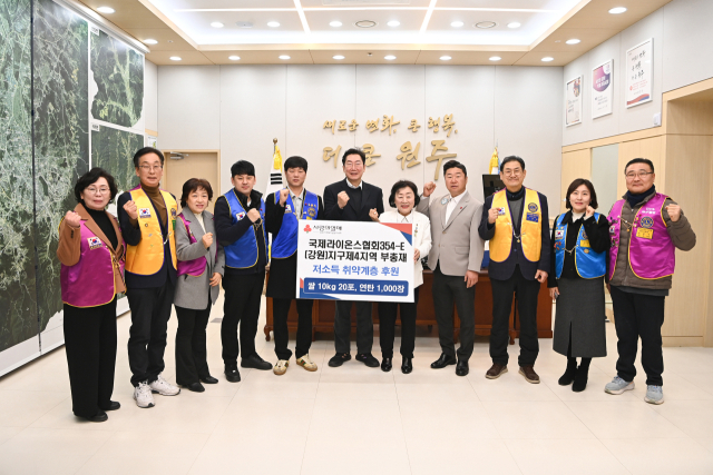 국제라이온스협회 354-E(강원)지구 제4지역 곽매홍 부총재와 클럽회장 10명은 지난 13일 원주시청을 방문해 지역 내 저소득 취약계층을 위한 쌀 10㎏ 20포와 연탄 1,000장을 전달했다.