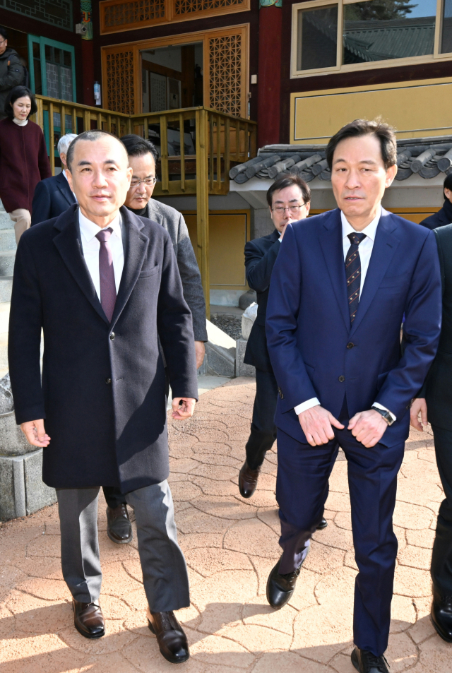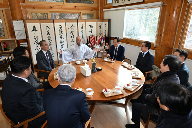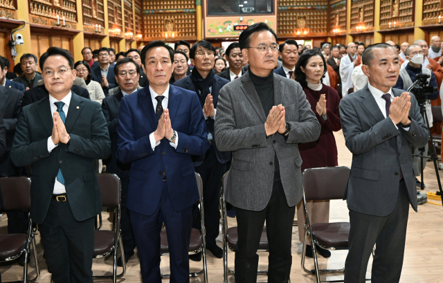 [포토뉴스]“새해 덕담 나누며” 김진태·우상호, 월정사 신년하례법회 참석