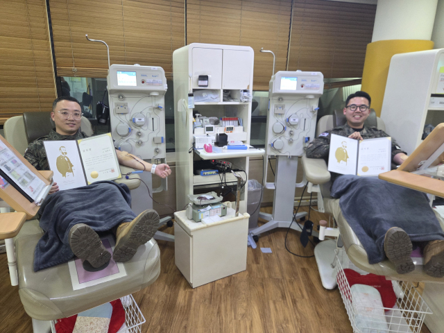 두 장교는 최근 겨울철 혈액 수급이 어렵다는 소식을 접하고 의료 현장에 보탬이 되고자 지난 20일 대한적십자사 강원혈액원을 찾았다. 이날 정기적인 헌혈 참여를 통해 모아온 헌혈증 50장을 기부하며 나눔에 동참했다.