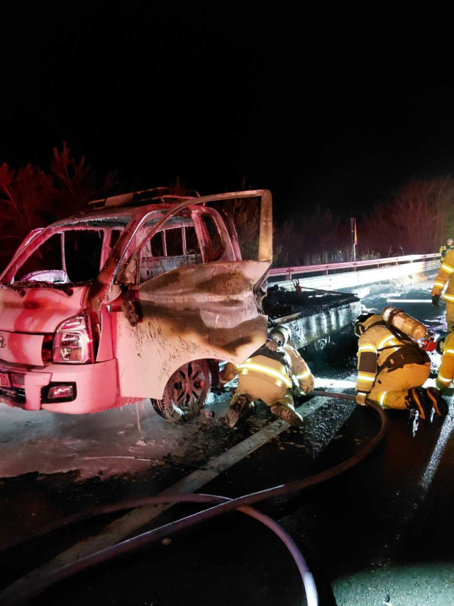 지난 22일 오후 6시50분께 동해시 초구동 동해고속도로(강릉방향)에서 중형트럭에서 화재가 발생했다.