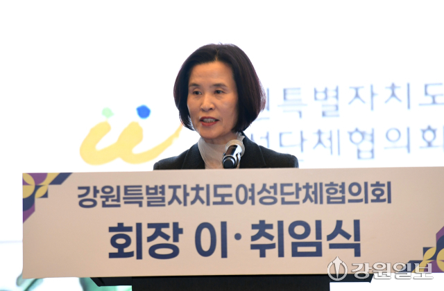 강원특별자치도여성단체협의회의 제42·43대 회장 이·취임식이 23일 춘천 미래컨벤션에서 개최됐다. 안정희 회장에게서 회기를 넘겨 받은 최선녀 제43대 회장이 강원 여성들과 새로운 도약을 위한 첫발을 뗐다.