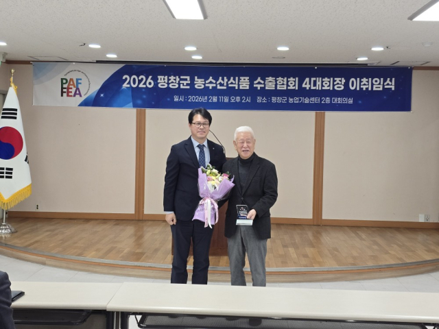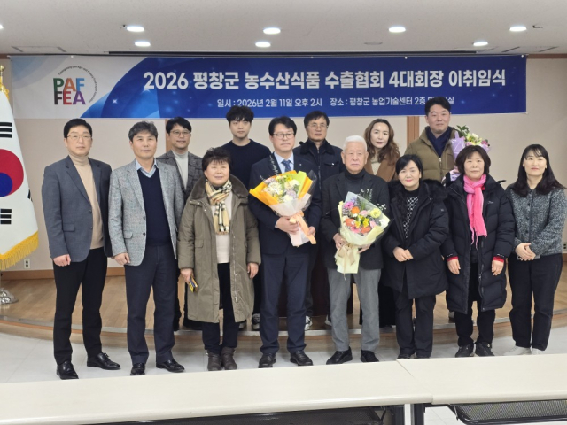 【평창】평창군 농수산식품 수출협회는 최근 평창군농업기술센터 대회의실에서 ‘농수산식품 수출협회장 이·취임식’을 개최했다.