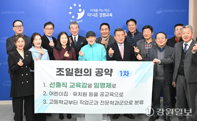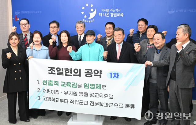 강원특별자치도교육감에 출마하는 조일현 전 국회의원이 24일 교육청 브리핑룸에서 공약을 발표하고 있다. 신세희기자강원특별자치도교육감에 출마하는 조일현 전 국회의원이 24일 교육청 브리핑룸에서 공약 발표 전 기념촬영하고 있다. 신세희기자강원특별자치도교육감에 출마하는 조일현 전 국회의원이 24일 교육청 브리핑룸에서 공약 발표 전 기념촬영하고 있다. 신세희기자