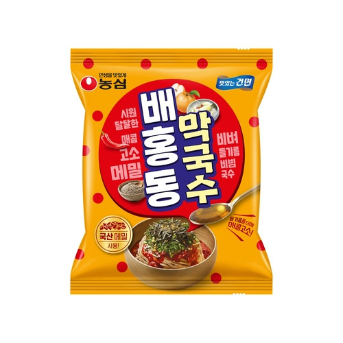 ■농심 '배홍동막국수' 출시=농심은 배홍동 브랜드의 네 번째 신제품 '배홍동막국수'를 다음 달 2일 출시한다. 배홍동막국수는 국산 메밀을 넣어 만든 면발과 배홍동 특유의 매콤새콤한 비빔장, 들기름의 고소함이 한데 어우러진 제품이다. 배홍동막국수의 면은 국산 메밀을 사용한 건면으로 구수함과 함께 깔끔하고 부드러운 식감을 구현했다고 농심은 설명했다. 소스는 배와 홍고추, 동치미를 갈아 숙성한 배홍동 비빔장에 들기름과 겨자를 더했다. 농심 관계자는 “올해도 소비자 트렌드를 반영한 신제품으로 비빔면 시장에 새로운 가치를 부여할 계획”이라고 말했다.