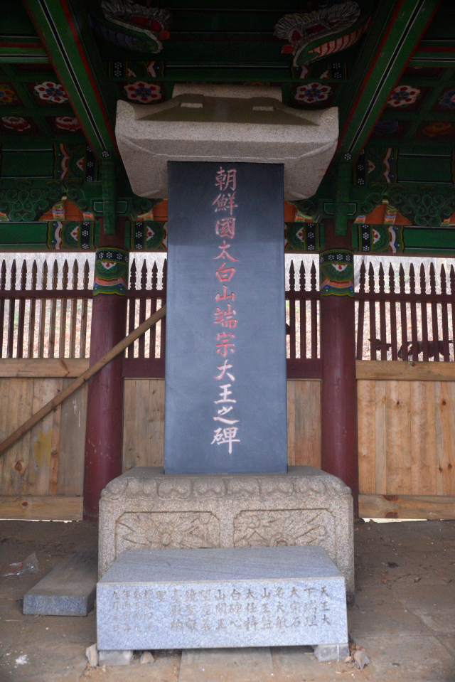 태백산 단종비각은 태백산 망경사에서 천제단 방향으로 올라가는 계단 왼편에 삼칸겹집 팔작지붕 형태로 세워져 있다.