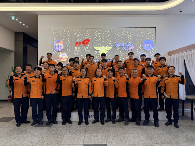 동해소방서 강윤혁 서장과 직원들이 3.1절 107주년 기념 제27회 동해시민 건강걷기대회에 참가해 화재예방을 적극 홍보할 것을 다짐하며 파이팅을 외쳤다.