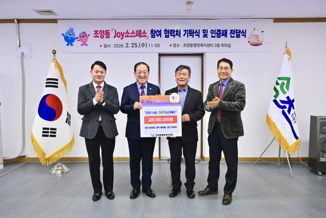 속초시 조양동행정복지센터는 25일 센터에서 'JOY(조이) 소스페소' 참여 협력처 기탁식 및 인증패 전달식을 개최하고, 지역사회의 자발적인 참여를 바탕으로 한 아동복지사업을 3월 개학과 함께 본격 추진한다.