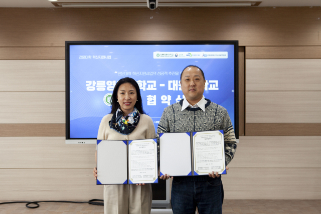 강릉영동대 혁신지원사업단(단장:서원석)은 25일 강릉영동대 본관 3층 컨퍼런스룸에서 대원대 혁신지원사업단(단장:손정희)과 ‘전문대학 혁신지원사업의 성공적 추진을 위한 업무협약’을 체결했다.