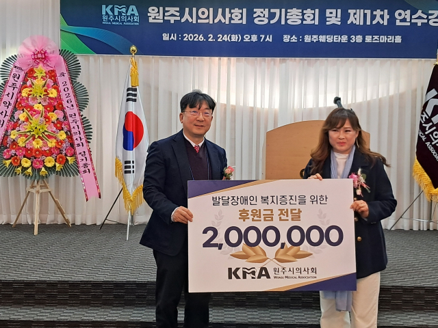 원주시의사회(회장:김영석)는 지난 24일 원주웨딩타운에서 송기헌 국회의원, 원강수 원주시장, 이정열 강원특별자치도의사회장 등이 참석한 가운데 정기총회 및 연수강좌를 진행했다. 이날 시의사회는 ‘시민과 함께하는 의사회’란 모토로 지역사회와의 상생 방안을 모색했으며, 도지적발달장애인복지협회 원주시지부(지부장:진윤주)에 200만원을 후원했다.
