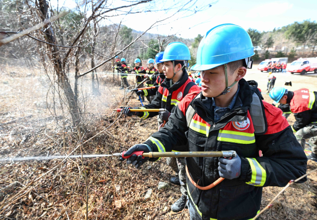 훈련은 산불 발생 상황을 가정해 피해상황 식별 및 비상소집, 초동조치, 산불진화반 편성 및 투입, 옥외 소화설비 운용 등 단계별 합동 대응과정을 숙달하는 방식으로 진행됐다.