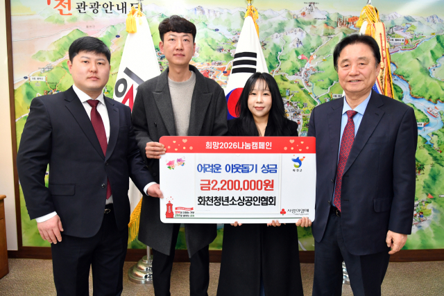화천청년소상공인연합회(회장:이재열)는 26일 화천군청(군수: 최문순)을 찾아 이웃돕기 성금 220만원을 기탁했다.