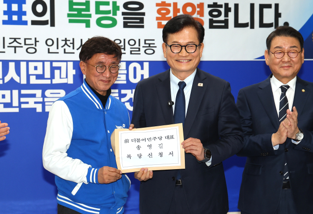 복당이 허용되면서 송 전 대표는 6·3 지방선거와 같이 실시되는 인천 계양을 보궐선거 후보 자리를 두고 김남준 전 청와대 대변인과 맞붙을 것으로 보인다.