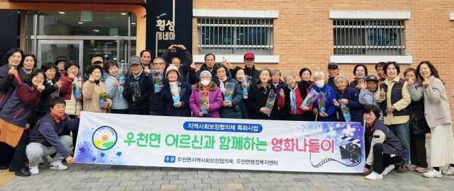 【횡성】횡성군 우천면지역사회보장협의체(위원장:최경희)는 27일 횡성시네마에서 지역 내 취약계층 어르신들을 모시고 '우천면 어르신과 함께하는 영화나들이' 행사를 가졌다.