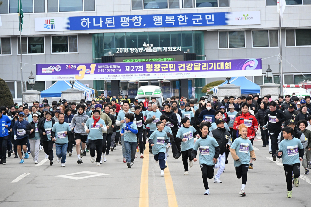 【평창】제107주년 3·1절을 기념하는 제27회 평창군민건강달리기대회가 1일 평창군청 앞 광장에서 역대 최대 규모인 군민 1,500여명이 참여한 가운데 성황리에 열렸다. 강원일보사가 주최·주관하고 평창군과 평창군체육회가 후원한 이번 대회는 3·1운동의 숭고한 정신을 되새기고 군민 건강 증진과 지역 공동체 화합을 도모하기 위해 마련됐다.