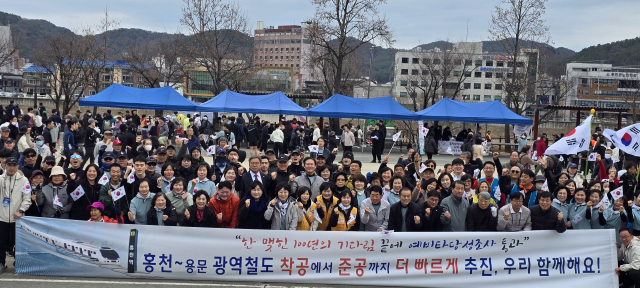 신영재 군수는 “지난해 이 자리에서 외친 홍천~용문 광역철도 예비타당성 조사 통과는 이뤄졌고, 이제는 꿈을 현실로 만들어 나가야 할 때”라며 “조기 착공을 넘어 2034년 조기 완공을 향해 다시 한번 한마음으로 달리자”고 말했다.