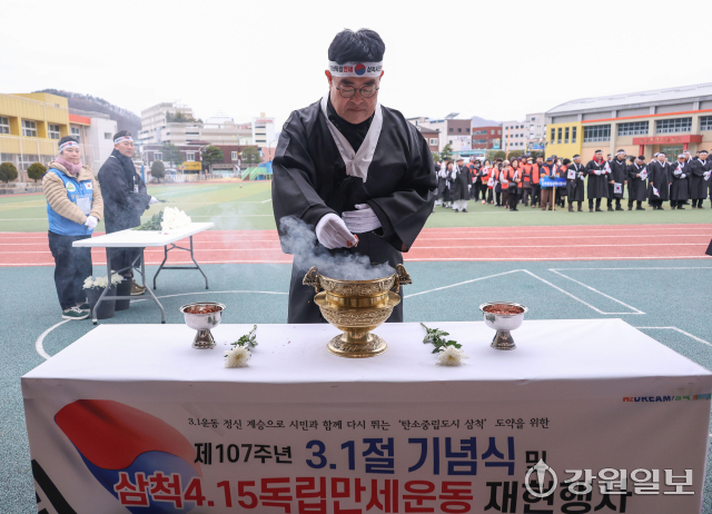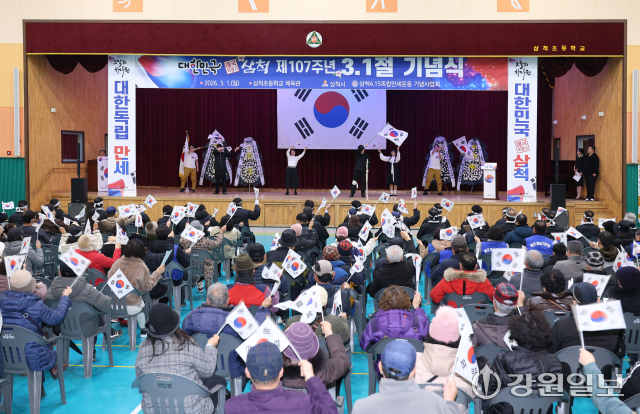 제107주년 3.1절 기념식 및 삼척4.15 독립만세운동 재현행사가 1일 삼척초등학교에서 삼척4.15독립만세운동 기념사업회(회장:김성진)주관으로 열렸다.