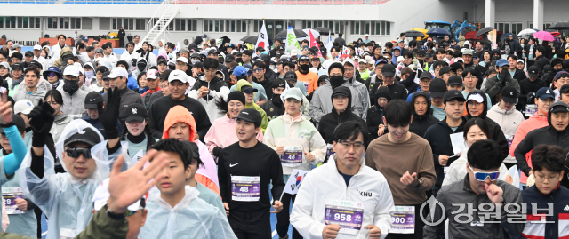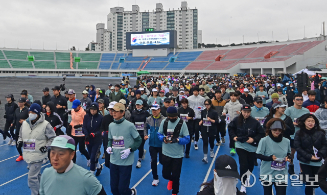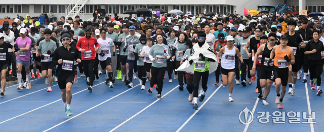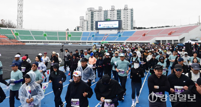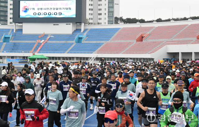 '제27회 강릉시민 건강달리기 대회’가 1일 강릉종합운동장에서 출발해 경포호수를 지나 돌아오는 10㎞ 구간에서 열려 1,000여명의 참가자들이 힘찬 출발을 하고 있다. 강릉=권태명기자