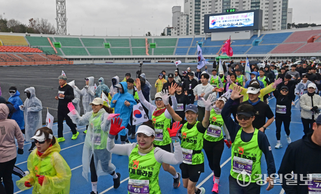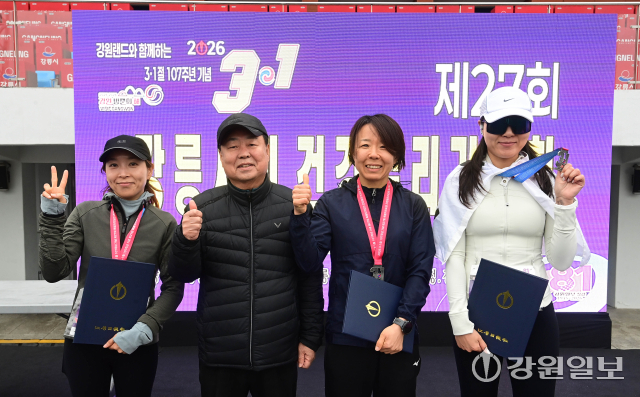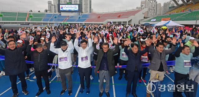 '제27회 강릉시민 건강달리기 대회’가 1일 강릉종합운동장에서 열려 김홍규 강릉시장, 최익순 강릉시의장, 정재연 강원대 총장, 박덕영 강릉캠퍼스 총장, 김기현 강릉시 교육장, 변상범 강릉경찰서장, 권영만 강릉시체육회장, 차주철 강릉시육상연맹 회장, 박종범 NH농협 강릉시지부장 등이 시총하고 있다. 강릉=권태명기자'제27회 강릉시민 건강달리기 대회’가 1일 강릉종합운동장에서 열려 김홍규 강릉시장, 최익순 강릉시의장, 정재연 강원대 총장, 박덕영 강릉캠퍼스 총장, 김기현 강릉시 교육장, 변상범 강릉경찰서장, 권영만 강릉시체육회장, 차주철 강릉시육상연맹 회장, 박종범 NH농협 강릉시지부장 등이 시총하고 있다. 강릉=권태명기자'제27회 강릉시민 건강달리기 대회’가 1일 강릉종합운동장에서 열려 김홍규 강릉시장, 최익순 강릉시의장, 정재연 강원대 총장, 박덕영 강릉캠퍼스 총장, 김기현 강릉시 교육장, 변상범 강릉경찰서장, 권영만 강릉시체육회장, 차주철 강릉시육상연맹 회장, 박종범 NH농협 강릉시지부장 등을 비롯한 1,000여명의 참가자들이 제107주년 3·1절을 맞아 만세삼창을 하고 있다. 강릉=권태명기자'제27회 강릉시민 건강달리기 대회’가 1일 강릉종합운동장에서 열려 김홍규 강릉시장, 최익순 강릉시의장, 정재연 강원대 총장, 박덕영 강릉캠퍼스 총장, 김기현 강릉시 교육장, 변상범 강릉경찰서장, 권영만 강릉시체육회장, 차주철 강릉시육상연맹 회장, 박종범 NH농협 강릉시지부장 등을 비롯한 1,000여명의 참가자들이 제107주년 3·1절을 맞아 만세삼창을 하고 있다. 강릉=권태명기자'제27회 강릉시민 건강달리기 대회’가 1일 강릉종합운동장에서 열려 설민석(30·동해지방해양수상청)씨가 1위로 골인점을 통과하고 있다. 강릉=권태명기자'제27회 강릉시민 건강달리기 대회’가 1일 강릉종합운동장에서 열려 설민석(30·동해지방해양수상청)씨가 1위로 골인점을 통과하고 기념사진을 찍고 있다. 강릉=권태명기자'제27회 강릉시민 건강달리기 대회’가 1일 강릉종합운동장에서 열려 설민석(30·동해지방해양수상청)씨가 1위로 골인점을 통과하고 기념사진을 찍고 있다. 강릉=권태명기자'제27회 강릉시민 건강달리기 대회’가 1일 강릉종합운동장에서 열려 남자부 입상자에 대한 시사익이 진행되고 있다. 강릉=권태명기자'제27회 강릉시민 건강달리기 대회’가 1일 강릉종합운동장에서 열려 남자부 입상자에 대한 시사익이 진행되고 있다. 강릉=권태명기자'제27회 강릉시민 건강달리기 대회’가 1일 강릉종합운동장에서 열려 여자부 입상자에 대한 시사익이 진행되고 있다. 강릉=권태명기자'제27회 강릉시민 건강달리기 대회’가 1일 강릉종합운동장에서 열려 여자부 입상자에 대한 시사익이 진행되고 있다. 강릉=권태명기자