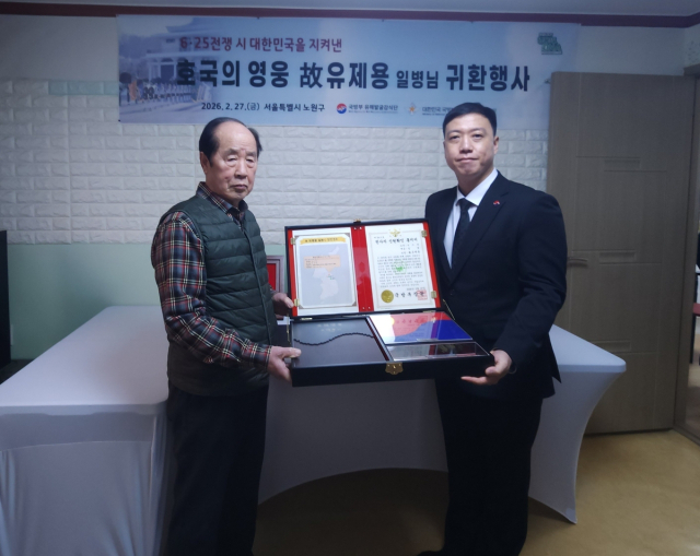 감식단은 이날 고인 유족의 자택에서 호국의 영웅 귀환 행사를 열고 고인의 신원확인 통지서와 유품 등을 전달했다.