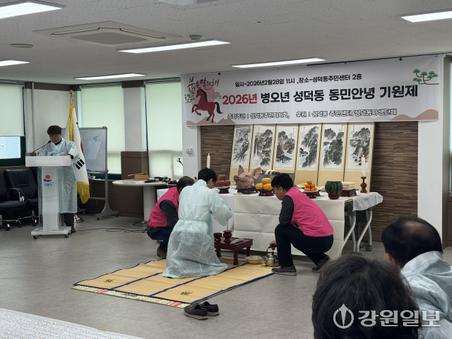 강릉시 성덕동은 지난 28일 성덕동주민센터에서 지역의 안녕과 주민들의 평안을 기원하는 ‘무사안녕기원제’를 성황리에 개최했다. 성덕동 주민자치회(회장 박철근)가 주관하고 통장협의회, 자율방범대, 새마을부녀회, 새마을협의회, 노인회, 바르게살기협의회, 갓바위상인회 등 지역 내 자생 단체들이 뜻을 모아 진행된 이번 행사는 지역 화합의 의미를 더했다.