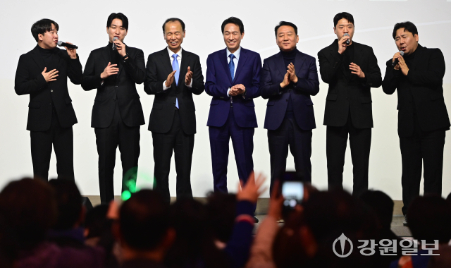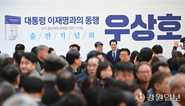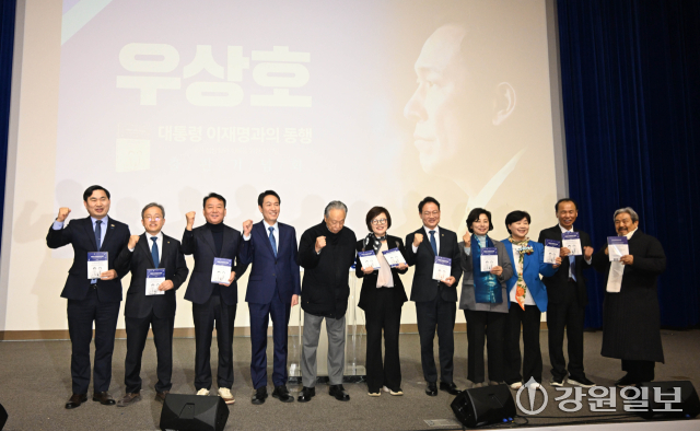 강원특별자치도지사에 출마하는 우상호 전 청와대 정무수석의 출판기념회가 2일 호텔 인터불고 원주에서 '대통령 이재명과의 동행, 국가 정상화와 회복을 위한 210일'을 주제로 우 전 수석, 한병도 더불어민주당 원내대표, 최문순·이광재 전 지사, 권노갑 더불어민주당 상임고문, 송기헌·허영 국회의원을 비롯한 내빈과 지지자들이 참석한 가운데 열렸다.