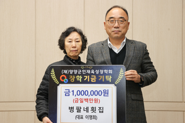 양양읍에 있는 병팔네횟집(대표:이명희)는 4일 양양군청을 방문해 탁동수 양양군수권한대행에게 인재육성장학기금 100만원을 전달했다.