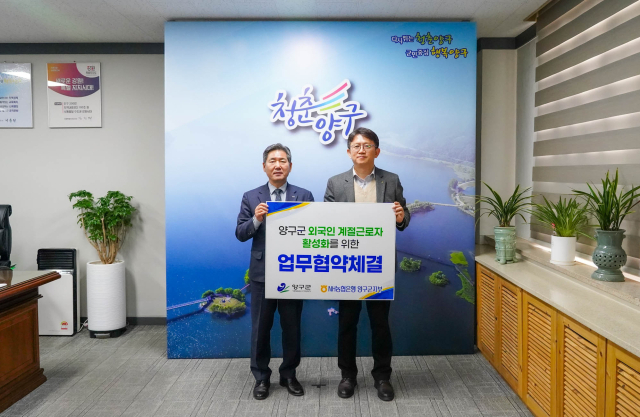 협약에 따라 농협 양구군지부는 양구군에 배치되는 외국인 계절근로자를 대상으로 급여 지급을 위한 입출금 계좌와 해외송금 계좌 개설을 지원한다.