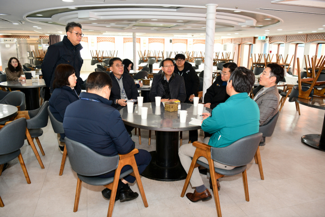 속초시의회 예산결산특별위원회(위원장:김명길)는 지난 6일 속초-러시아 블라디보스토크 항로 운항을 재개한 국제카페리 지앤엘그레이스호에 승선해 선박시설과 여객수송체계, 터미널 운영현황 등을 직접 살펴보고 국제항로 운영실태에 대한 설명을 청취했다.