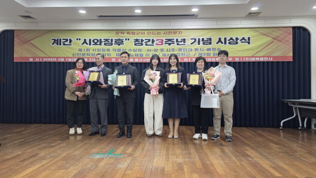 시 전문지 계간 ‘시와징후’ 창간 3주년 기념식이 지난 7일 서울 중구 구민회관 소강당에서 열렸다. 시와징후는 장르·세대·경향을 넘는 문학의 장을 만들기 위해 2023년 창간됐다. 발행인은 김남권 강원아동문학회장이 맡고 있다.