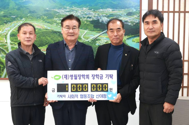 영월 사회적협동조합 산야정 김석원 대표와 송창율 상임이사 등은 지난달 19일 군청에서 최명서 군수에게 인재육성을 위해 사용해 달라며 장학금 100만원을 기탁했다.