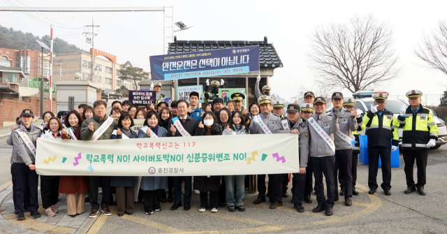 홍천경찰서(서장:김근준)는 10일 홍천중·고에서 신영재 군수, 문선옥 홍천교육장 등이 참석한 가운데 신학기 학교폭력 예방 및 교통안전 캠페인을 개최했다. 이날 7개 기관·단체 관계자 70명이 참가했고, 학교폭력·사이버도박·마약범죄·성폭력 예방, 117·112신고 방법 안내, 어린이·청소년 보호구역 내 감속 운행 준수 등을 홍보했다.