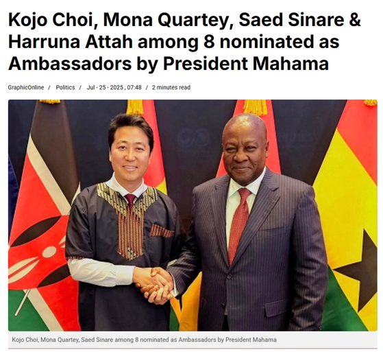 1977년 한국과 수교한 가나는 아프리카 내의 민주주의 선도국이자 서아프리카의 무역·물류 중심국이다. 지난해 춘천 출신 이민 1.5세 고조 최(한국이름 최승업) 가나 대사가 부임해 화제가 되기도 했다.