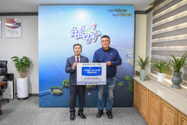 주식회사 유피에스는 11일 양구군청을 방문해 양록장학금 100만원을 양구군에 전달했다.