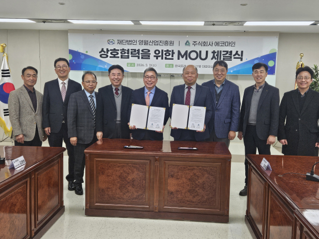 영월산업진흥원은 11일 서울 프레스센터에서 ㈜에코마인과 ‘산업·광산 부산물 고부가가치화 협력체계 구축을 위한 업무협약(MOU)’을 체결했다.
