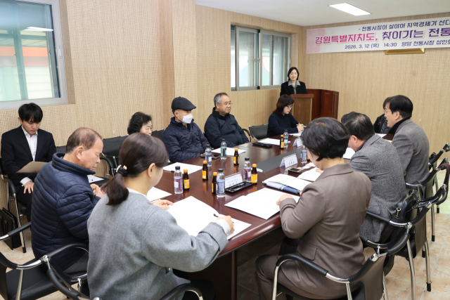 강원특별자치도 찾아가는 전통시장 간담회가 12일 양양 전통시장 상인회 회의실에서 열려 전통시장활성화 방안 등을 논의했다.