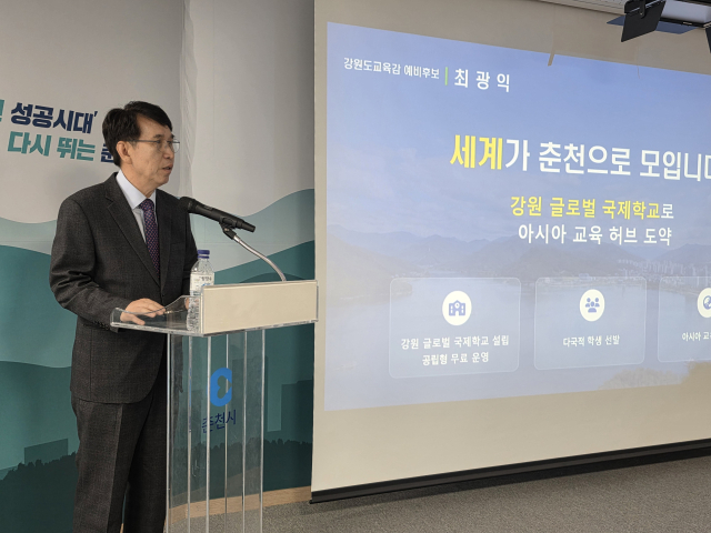 6·3 강원특별자치도교육감 선거 최광익 예비후보가 12일 춘천시청에서 기자회견을 열고 춘천권역 핵심 공약을 발표했다.