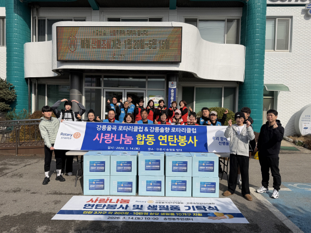 강릉율곡로타리클럽과 솔향로타리클럽은 지난 14일 송정동주민센터(동장:강정희)에서 ‘연탄 및 생활용품 기탁식’을 열고 따뜻한 나눔 봉사활동을 펼쳤다. 이날 연탄은 취약계층 3가구에 각각 200장씩 전달됐으며, 10가구에 가구당 10만원 상당의 생활용품이 지원됐다.