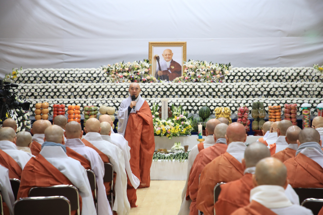 지난 12일 원적에 든 큰스님의 마지막 길을 함께하기 위해 전국에서 모인 스님과 신도, 인연을 맺은 각계 인사 등 2,000여명이 참석한 가운데 열린 이날 영결식은 명종의식을 시작으로 삼귀의례, 영결법요, 행장소개, 영결사, 종정예하의 법문, 총무원장 진우 스님의 추도사, 퇴우 정념 월정사 주지스님의 문도추도문 낭독, 헌화 등의 순으로 진행됐다.