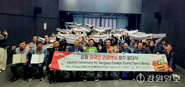 강원특별자치도와 시는 16일 원주미래산업진흥원에서 시 외국인 관광택시 발대식을 했다. 이날 자리에서는 교육을 이수한 외국인 관광택시 운전자 대표의 친절·안전 선언문 낭독과 외국인 관광택시 인증서 수여, 외국인 관광택시 깃발 부착식, 강원관광 홍보 영상 상영, K-글로벌 관광수도 도약계획 보고 등이 진행됐다. 발대식 후에는 외국인 관광객 70여명이 관광택시를 타고 원주 전역을 관광했다.