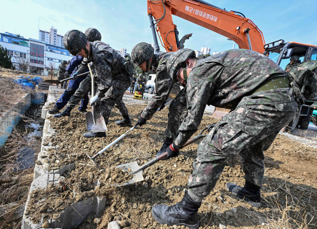 해군 1함대사령부(이하 1함대) 공병대대는 16일 동해지역에서 ‘2026 자유의 방패(FS·Freedom Shield)’ 연습의 일환으로 항만피해복구 훈련을 실시했다.