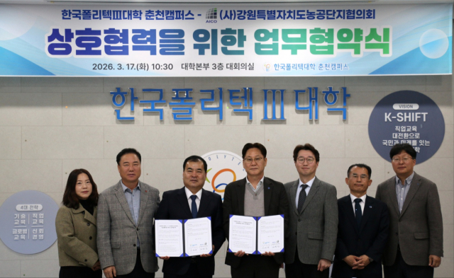 한국폴리텍Ⅲ대학(학장:지경배) 춘천캠퍼스는 17일 대학본부 대회의실에서 강원특별자치도농공단지협의회(회장:김종진)와 지역 기술인재 양성 및 상호협력을 위한 업무협약을 체결했다. 이번 협약을 통해 양 기관은 취업 연계 및 채용 정보 공유, 지역 산업 발전 프로그램 발굴 등 실질적인 산학협력 체계를 구축, 지역 산업 발전 기여에 나선다.