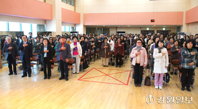 대한노인회 강릉시지회 부설 노인대학 입학식이 17일 노인종합복지관 2층 대강당에서 심재빈 지회장, 최호철 학장, 김홍규 강릉시장, 최익순 강릉시의장과 입학생 118명이 참석한 가운데 열렸다. 노인대학은 1학년은 매주 화요일 10시부터 수업을 하며 2학년은 수요일 수업을 실시한다. 강릉=권태명기자
