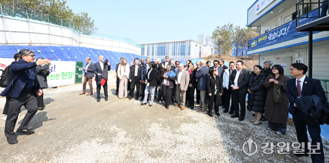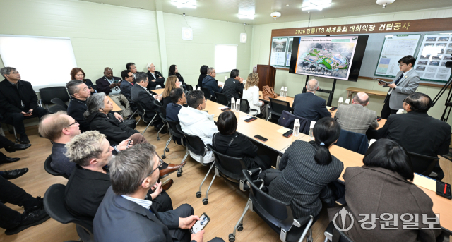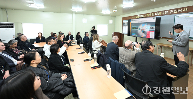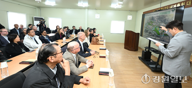 17일 지능형교통체계(ITS) 세계총회 주요 의사결정 기구인 ITS 이사들과 학술 프로그램을 총괄하는 국제프로그램위원회(IPC) 위원들이 오는 10월 강릉 총회가 열릴 컨벤션센터를 방문, 관계자들의 설명을 듣고 있다. '2026 강릉 ITS 세계총회'는 10월 19∼23일 강릉 올림픽파크 일원에서 열리며, 고위급 회담, 학술 세션, 기술 시연·시찰, 기술전이, 문화행사 등 다채로운 행사가 진행될 예정이다. 강릉=권태명기자